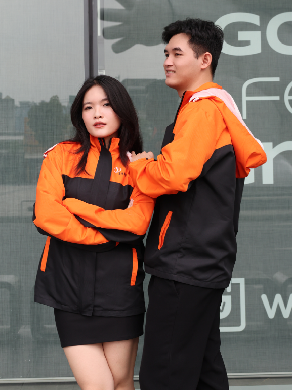 Thuộc BST New Wind 2025, mẫu NW02 mang sắc cam phối đen rực rỡ – biểu trưng cho sức sống, sự nhiệt huyết và tinh thần sáng tạo không ngừng. Đây là lựa chọn hoàn hảo cho đồng phục đội nhóm, công ty, nhân viên kỹ thuật hoặc giao hàng muốn tạo dấu ấn riêng.