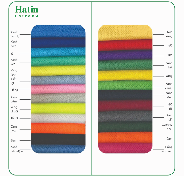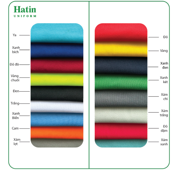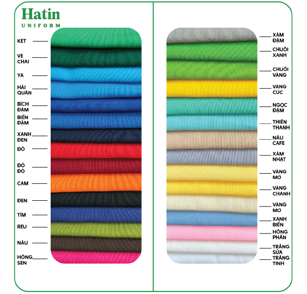 Hatin hiểu rằng, màu sắc phù hợp với từng chất liệu vải giúp cho đồng phục của mỗi doanh nghiệp trở nên hoàn hảo hơn. Dưới đây là bảng màu áo theo từng chất liệu cho bạn tham khảo: