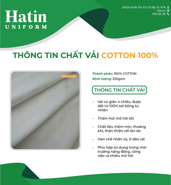 Mỗi chất vải được chọn lựa kỹ lưỡng để phù hợp với từng mục đích sử dụng và ngành nghề cụ thể, giúp tăng cường hiệu quả truyền thông và quảng bá hình ảnh của doanh nghiệp.
